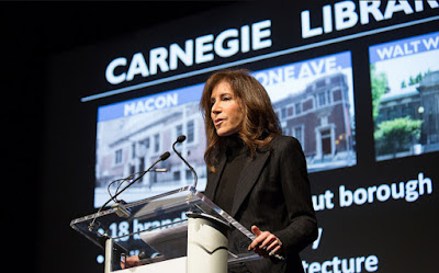 Ms. Johnson later similarly soothed the audience about how she cares about adequate library size when she explains that libraries built during the Lindsay era that are "on average 7500 square feet which is woefully small." Ms. Johnson doesn't tip her hand to the audience to say that one of contradictory priorities was to shrink such a "woefully small" 7500 square foot library in Red Hook down to just 5,000 square feet in a privatizing handing off 2000 square feet of the library to Spaceworks in a scheme that deserved and got a lot more scrutiny from the local community than Ms. Johnson wanted.