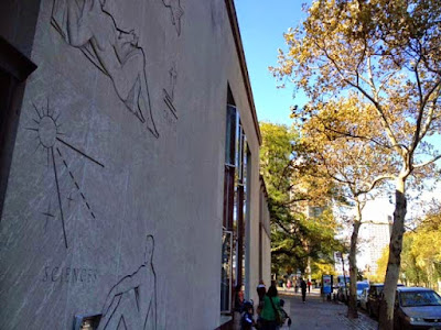 | The 63,000 square foot Brooklyn Heights central destination library in Downtown Brooklyn. The admired base-relief murals are by C Spampintato. |